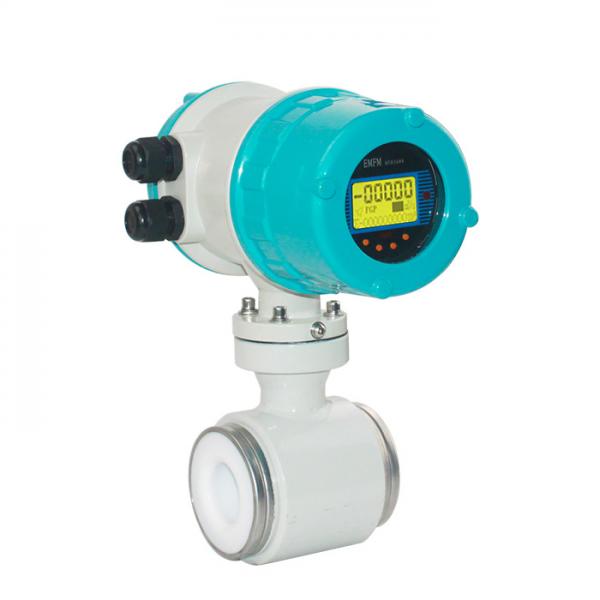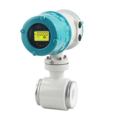 电磁流量计是一种高性能、高可靠性的流量计。电磁流量计的结构主要由磁路系统、测量导管、电极、外壳、衬里和转换器等部分组成。 法兰式电磁流量计就显示方式分为:分体型电磁流量计,一体型电磁流量计。电磁流量计系列公称通径DN15~DN3000。一体式电磁流量计测量原理是基于法拉第电磁感应定律,由传感器和转换器组成,传感器安装在测量管道上,转换器可以与传感器组合连接在一起称为一体型电磁流量计,转换器被安装在离传感器30米内或100米内的场合,两者间由屏蔽电缆连接称为分离型电磁流量计。传感器主要组成部分是:测量管、电极、励磁线圈、铁芯与磁轭壳体。